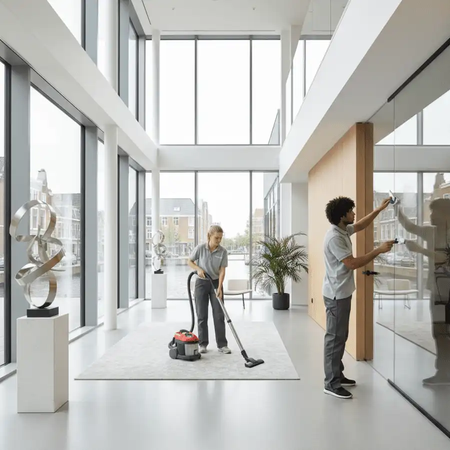 Schoonmaak van kantoren en bedrijfspanden in noordwijk en omgeving. Van basis onderhoud tot vaste teams, met dag- of avondschoonmaak. Inclusief sanitair, pantry, vloeren, werkplekken en algemene ruimtes.